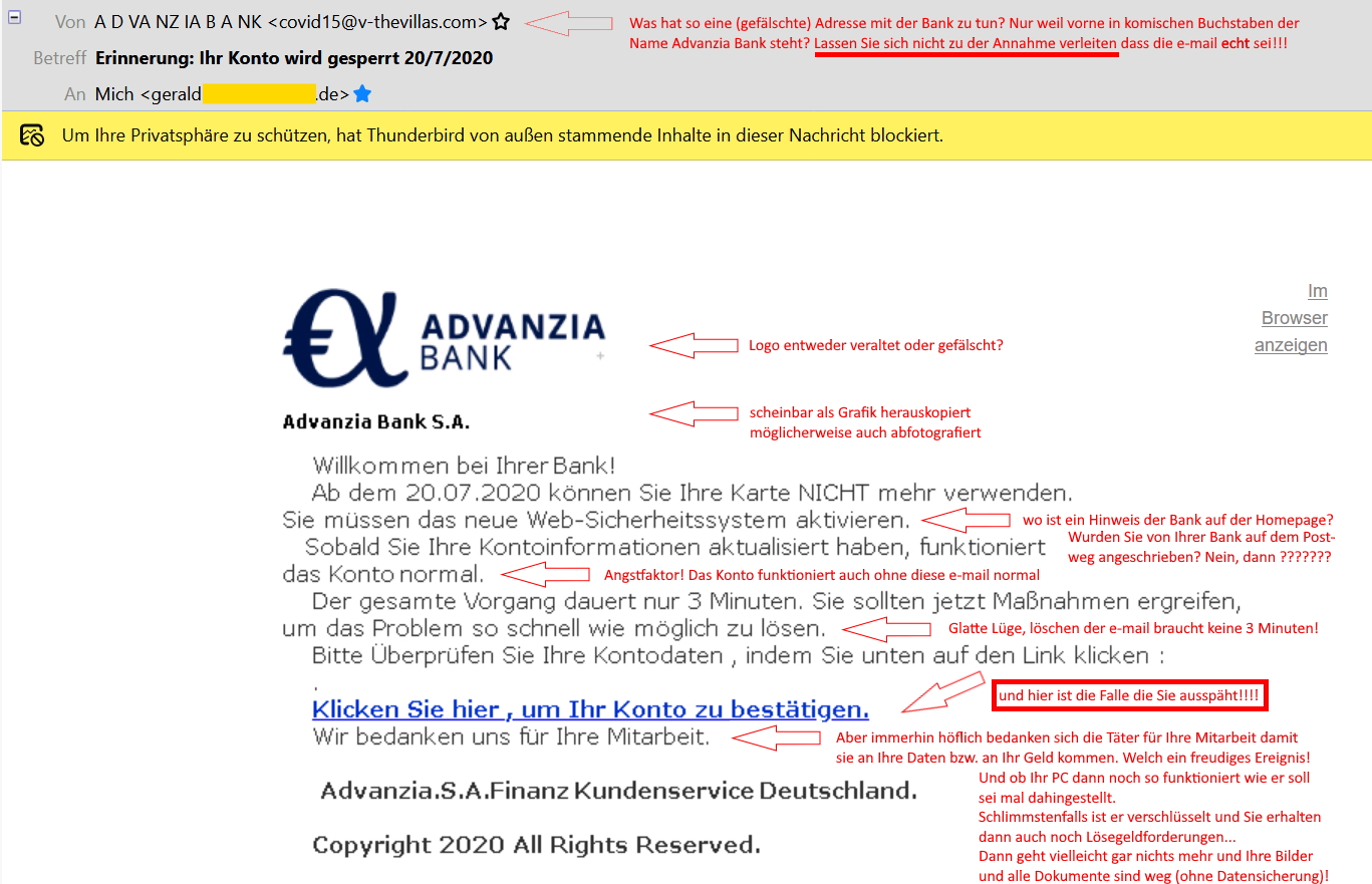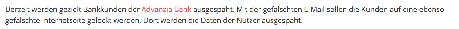 Was sagt uns das? Nun, da ich kein Kunde der Advianzi-Bank bin frage ich mich natürlich auch wieso bekomme ich so eine e-mail?