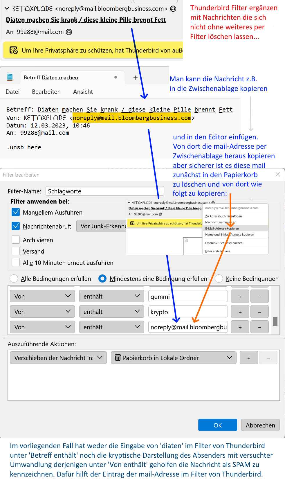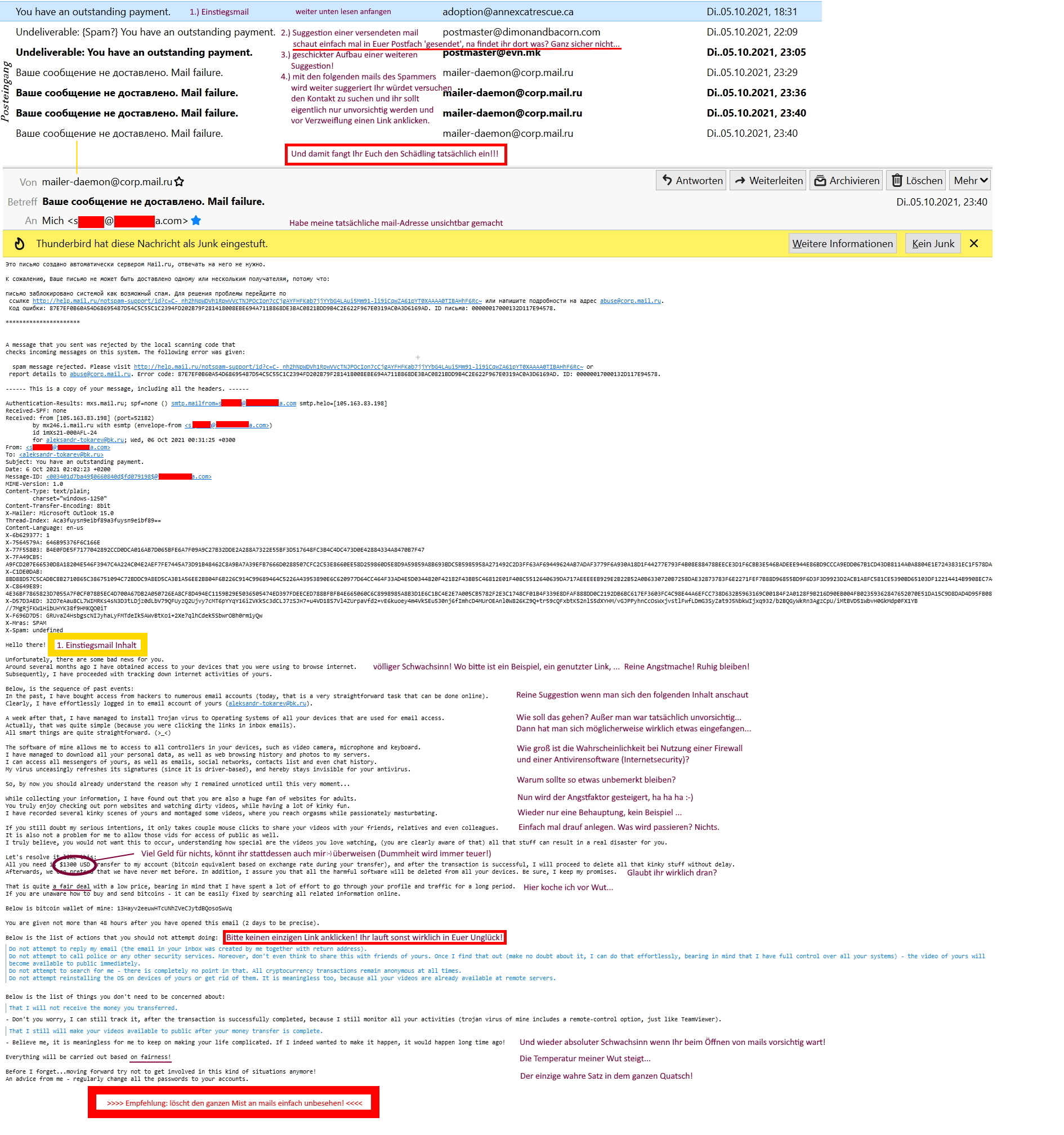 Sie können diese e-mail auch als SPAM markieren was aber wenig Sinn macht denn Sie müllen so nur Ihren Spam-Ordner zu. Und solche mails kommen immer wieder!