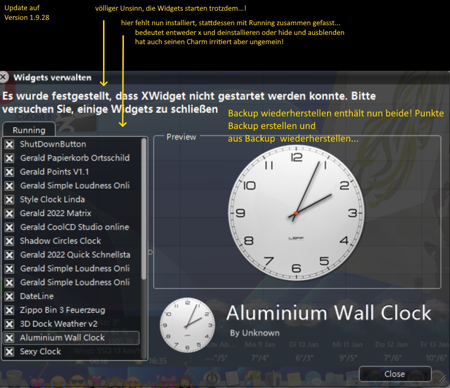 startet XWidget mit der Meldung "...failed starting... please close some widgets" so kann man das ruhig ignorieren denn XWidget startet trotzdem alle installierten XWidgets!
