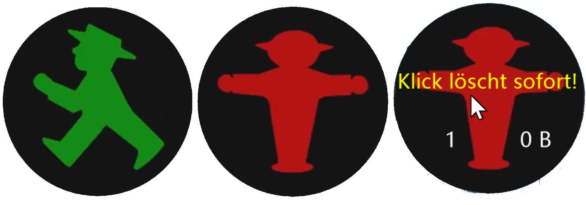 Kurz erklärt: grünes Männchen heißt Papierkorb ist leer, rotes Männchen heißt Papierkorb ist gefüllt, geht man mit dem Cursor auf's rote Mänchen erscheint auch der Warnhinweis dass bei Klick der Papierkorb geleert wird!