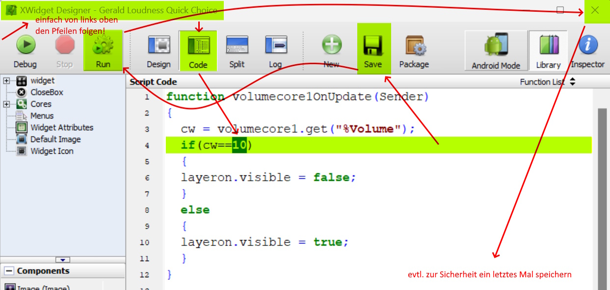 Um das Gehör zu schützen habe ich das Widget auf den Einstiegswert 10 gesetzt wissend dass manche PC's vielleicht eine andere Einstellung benötigen...? Das ändern des Wertes 10 ist über den Editor von XWidget aber einfach möglich und wird im zweiten Bild dargestellt.