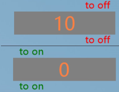 Zusätzlich bietet Ihnen das Widget die Möglichkeit bei einem höheren eingestellten Wert wie z.B. '30' zwischen '10' ' to on' oder '0' 'to off' zu wählen. Es werden an der Stelle beide Wahlmöglichkeiten angezeigt!