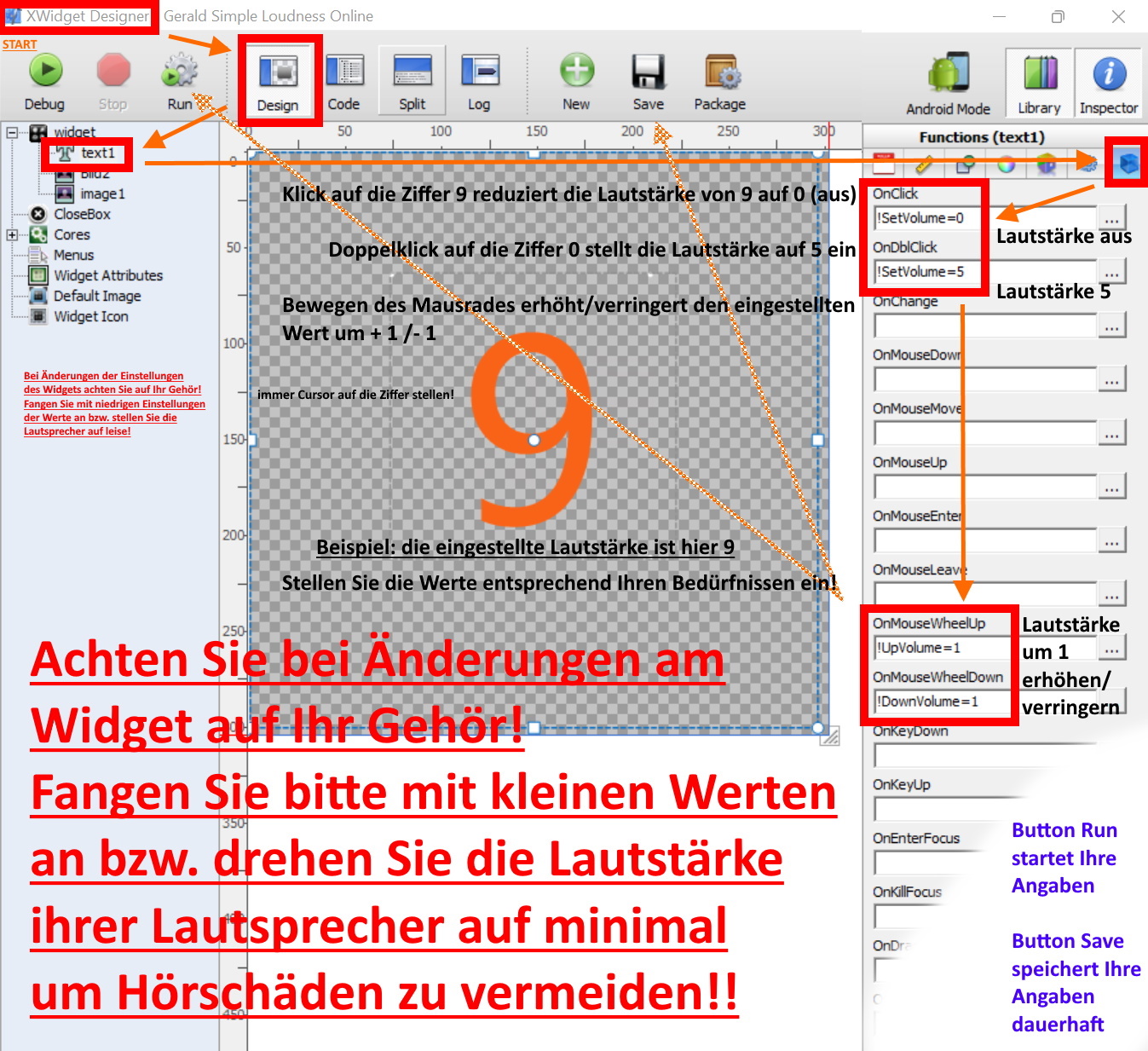 Viel Spaß beim Einsetzen des Widgets! Schützen Sie ihr Gehör bei Verwendung von XWidgets Lautstärkeneinstellungen, fangen Sie mit niedrigen Prozentzahlen an!